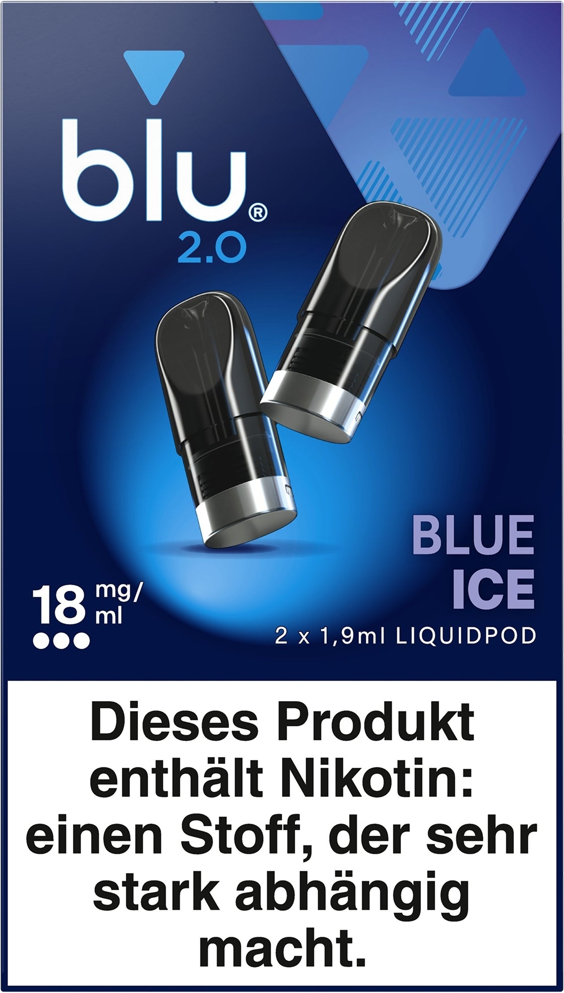 Der Verkauf von E-Zigaretten und Liquids unterliegt gesetzlichen Vorschriften. In Deutschland ist der Verkauf von Produkten mit Nikotin an Minderjährige (unter 18 Jahren) gesetzlich verboten. Der Erwerb von blu 2.0 Liquidpods Blue Ice ist nur für volljährige Personen erlaubt.