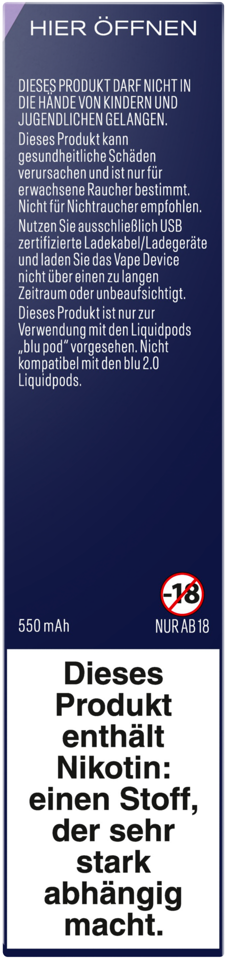 Das Blu Bar - Device Kit ist ein praktisches und benutzerfreundliches Gerät für Dampfer, die ein zuverlässiges Dampferlebnis suchen. Es wird empfohlen, immer die notwendigen Vorsichtsmaßnahmen zu treffen und das Gerät sicher und verantwortungsbewusst zu verwenden.