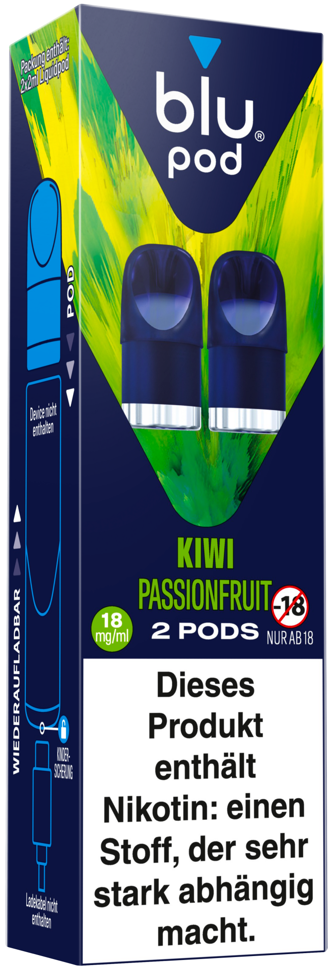 Die Blu Bar Pods - Kiwi Passionfruit bieten ein einzigartiges Dampferlebnis mit einer exotischen Kombination aus der süßen Kiwi und der aromatischen Passionsfrucht. Diese Pods sind speziell für die blu 2.0 entwickelt und bieten eine Nikotinstärke von 18mg/ml, ideal für Dampfer, die ein intensives und fruchtiges Dampferlebnis suchen.