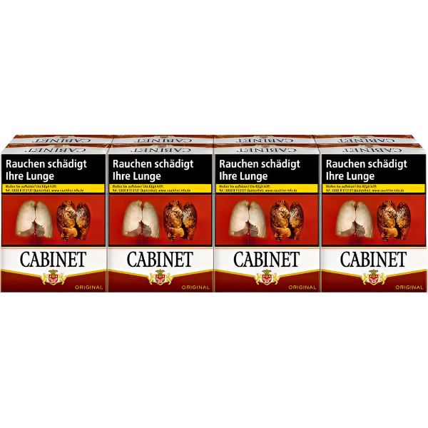 Die Cabinet Zigaretten Original XL bieten eine exzellente Traditional Blend Tabakmischung in einer praktischen XL-Packungsgröße. Ideal für Raucher, die eine größere Packung bevorzugen und regelmäßig Zigaretten konsumieren. Mit einem sehr guten Preis-Leistungs-Verhältnis ist dieser Tabak eine hervorragende Wahl für den täglichen Gebrauch. Denken Sie jedoch immer an die gesundheitlichen Risiken, die mit dem Konsum von Zigaretten verbunden sind.