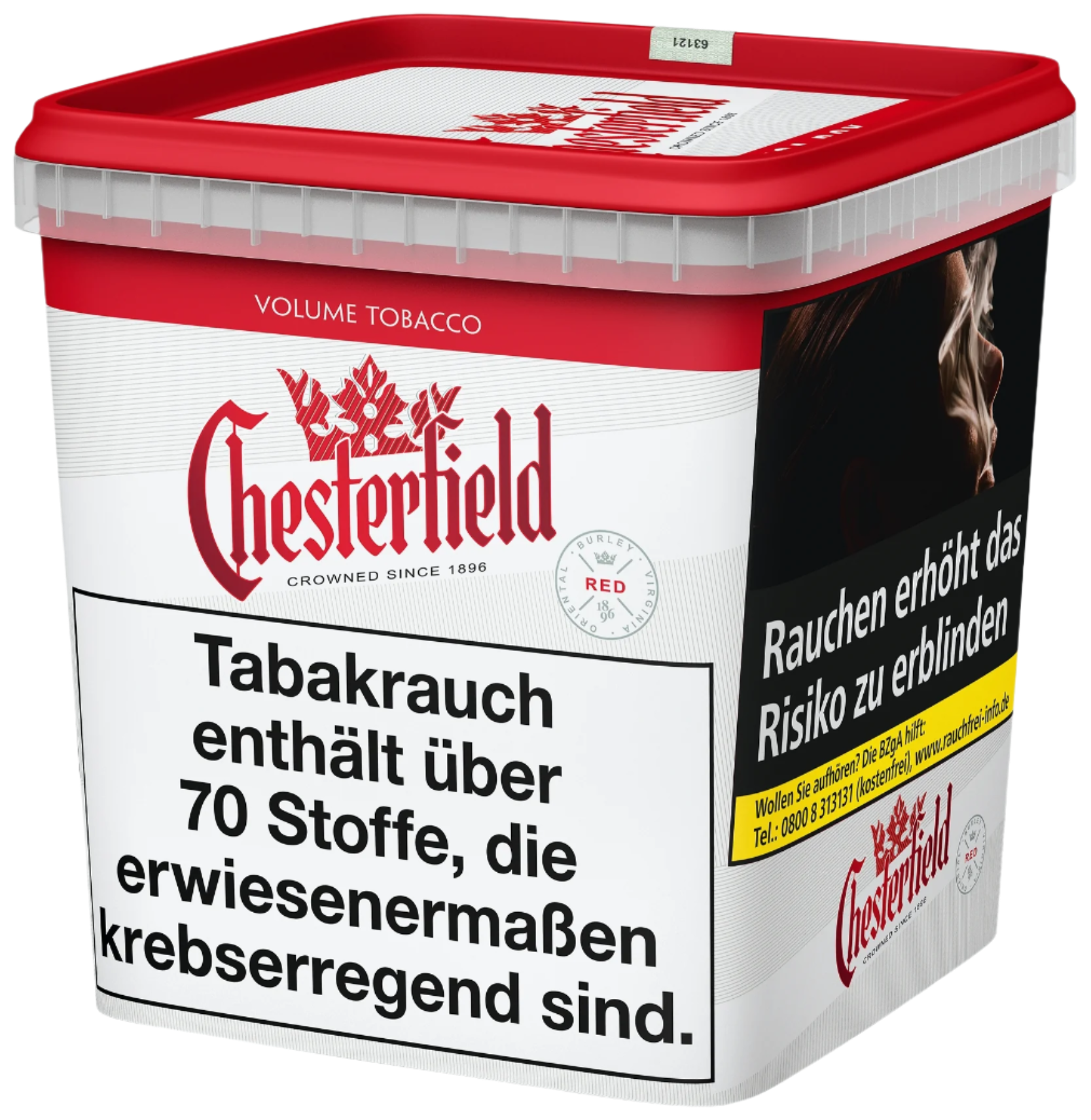 Die Chesterfield Red Volumen Super Box bietet eine hochwertige **American Blend** Mischung im praktischen Tabakeimer-Format. Mit einer großzügigen Menge und einem hervorragenden Preis-Leistungs-Verhältnis ist dieser Tabak eine exzellente Wahl für Raucher, die größere Mengen Tabak für das Stopfen bevorzugen. Bitte denken Sie jedoch immer an die gesundheitlichen Risiken, die mit dem Konsum von Tabak verbunden sind.
