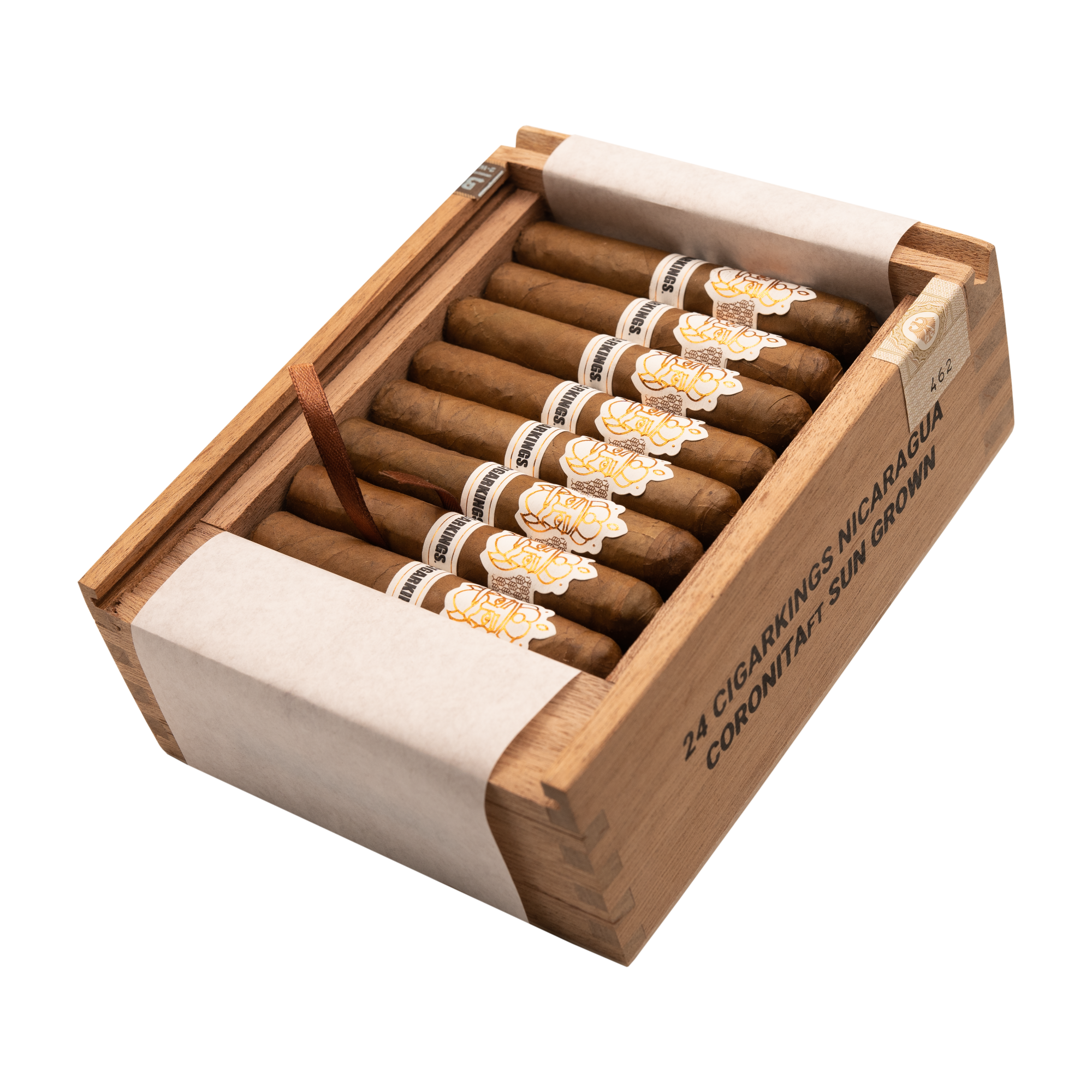 Erlebe mit der Coronita FT Sun Grown ein intensives Sun Grown-Aroma in kompakter Corona-Größe. Die sonnengereiften Deckblätter verleihen der Zigarre fruchtige, würzige Noten und eine angenehme Süße.