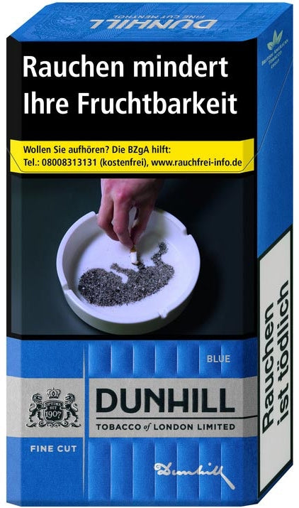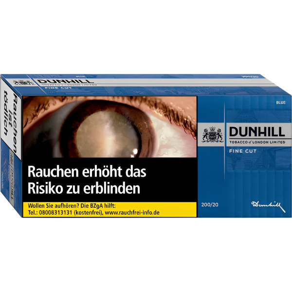 Genießen Sie die Dunhill Zigaretten Fine Cut Blue mit ihrem feinen und unverwechselbaren Virginia Blend, aber denken Sie daran, immer die gesundheitlichen Risiken des Rauchens zu berücksichtigen.