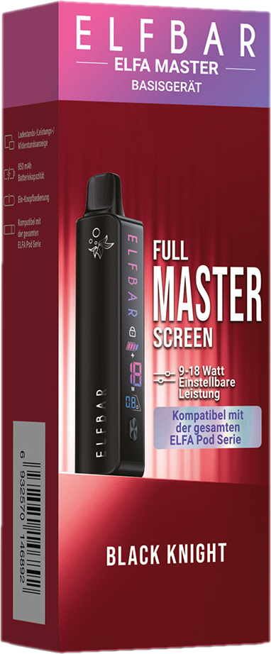 Das ELFA Master Basisgerät (Black Knight) von Elfbar ist die perfekte Grundlage für den Einsatz der innovativen Elfa Pods. Dieses Basisgerät vereint modernes Design mit einfacher Bedienung und erstklassiger Qualität. Es ist die ideale Wahl für alle, die ein elegantes und funktionales Gerät für ihre Liquid Pods suchen.