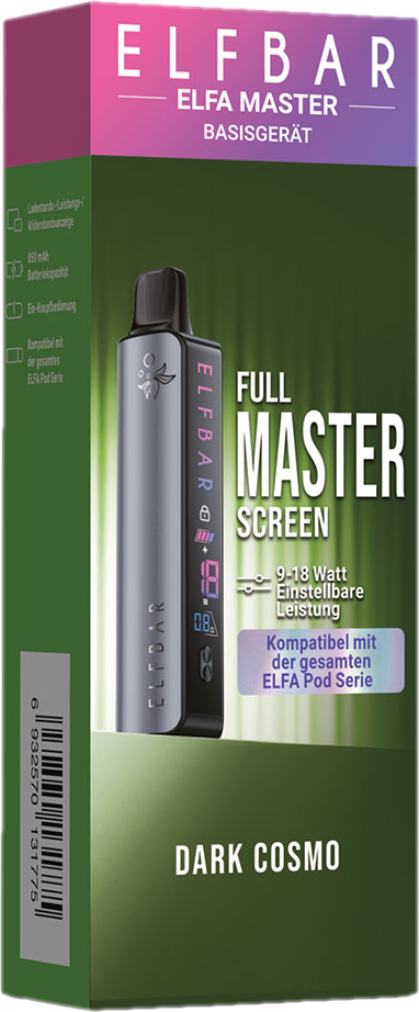 Das ELFA Master Basisgerät (Dark Cosmo) von Elfbar ist die perfekte Grundlage für den Einsatz der innovativen Elfa Pods. Es vereint modernes Design mit einfacher Bedienung und erstklassiger Qualität. Dieses elegante und funktionale Gerät sorgt für einen schnellen und komfortablen Genuss, wann immer Sie es wünschen.