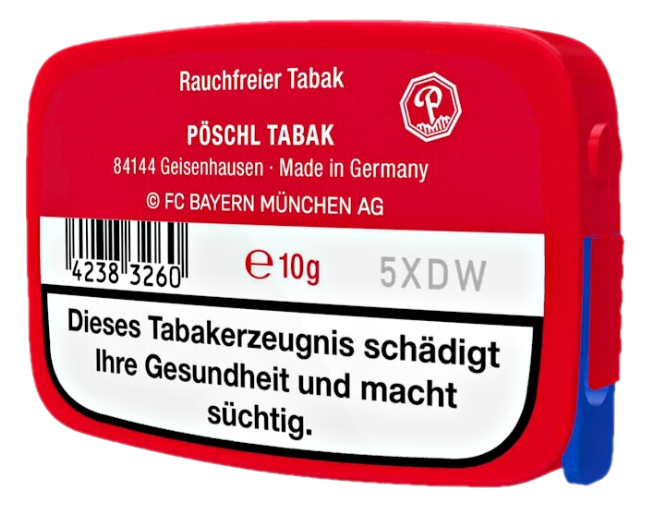 Der Erwerb und Konsum von Schnupftabak unterliegt in Deutschland strengen Vorschriften. Du darfst den FC Bayern Snuff erst ab 18 Jahren erwerben und verwenden.