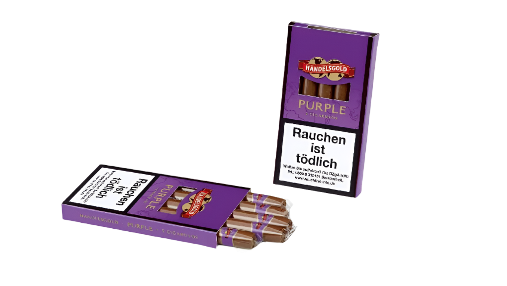 Entdecke die Handelsgold Purple (Wildberries) Zigarillos – verführerisches Waldbeeren-Aroma trifft auf dezente Süße. Perfekt für Genießer, die fruchtige Noten lieben und ein mildes Raucherlebnis schätzen.