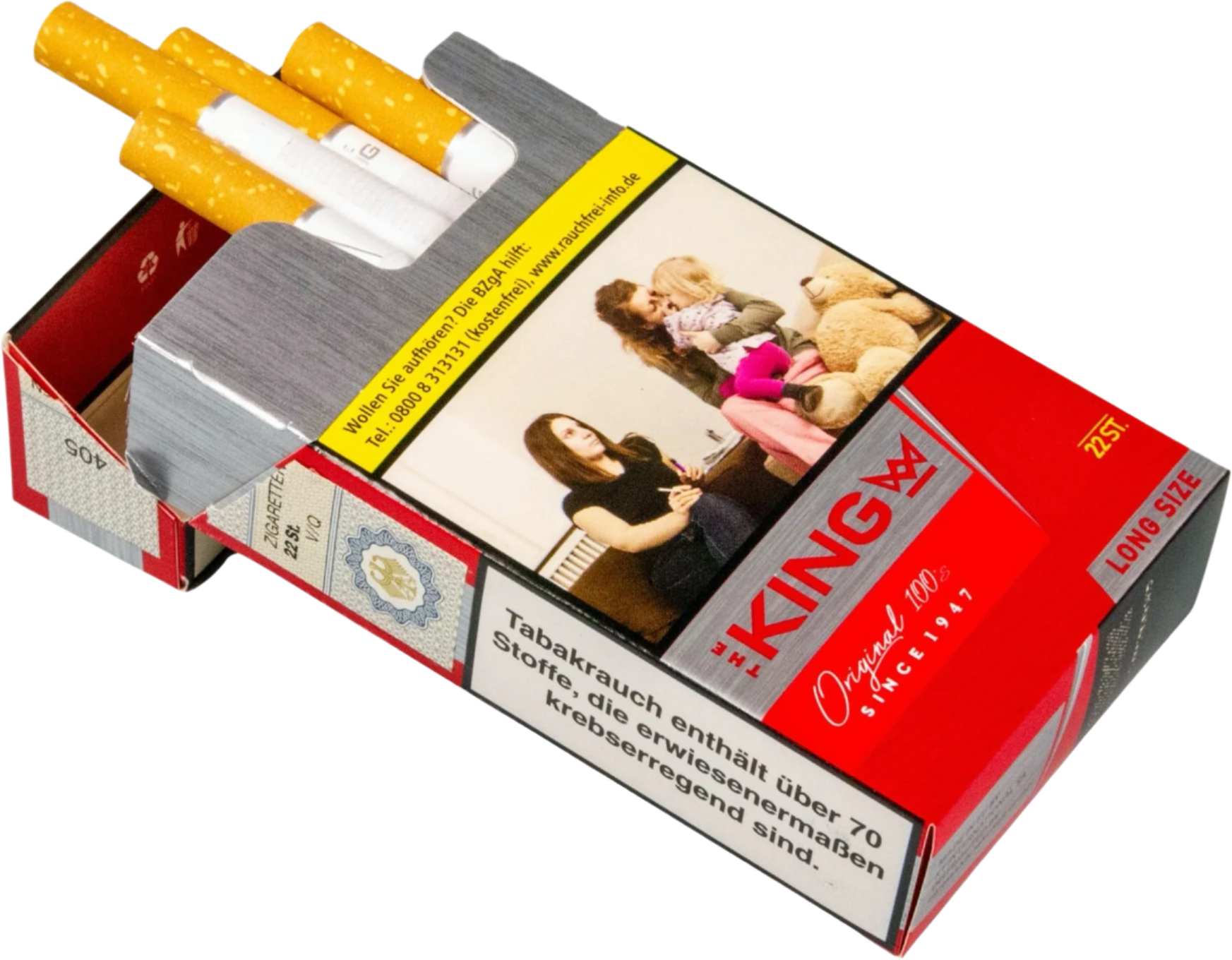 Rauchen ist gesundheitsschädlich und kann schwerwiegende gesundheitliche Folgen wie Lungenkrebs und Herz-Kreislauf-Erkrankungen verursachen. Der Konsum von Zigaretten führt zur Nikotinabhängigkeit und verkürzt das Leben. Wir empfehlen einen verantwortungsvollen Umgang mit Tabakprodukten.