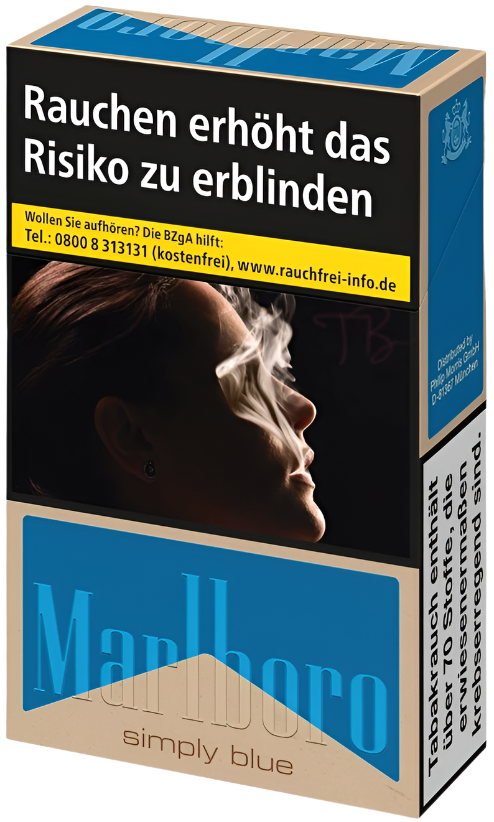 Der Verkauf und Konsum von Tabakwaren unterliegt strengen gesetzlichen Vorschriften. In Deutschland ist der Verkauf von Tabakprodukten an Minderjährige (unter 18 Jahren) gesetzlich verboten. Der Erwerb von Marlboro Zigaretten Simply Blue L ist nur für volljährige Personen erlaubt.