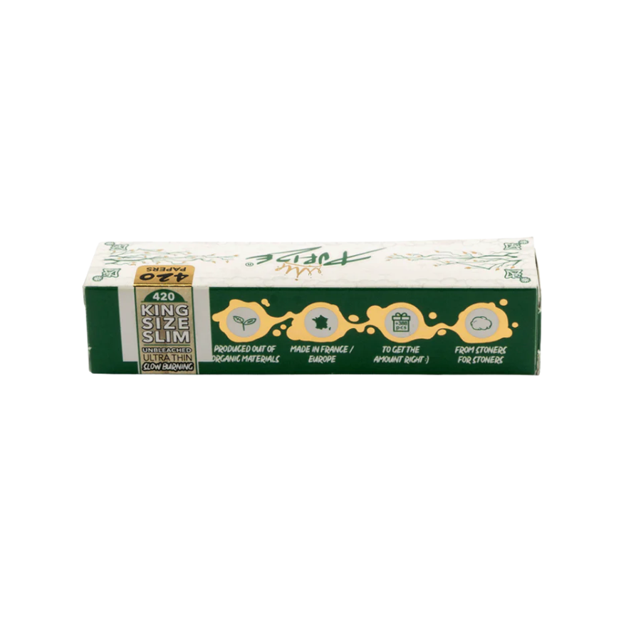 Mit den PURIZE® 420 Papers | King Size Slim im praktischen Booklet hast du stets ausreichend Vorrat, ein intensives Aroma und erstklassiges Abbrennverhalten für dein entspanntes Raucherlebnis.