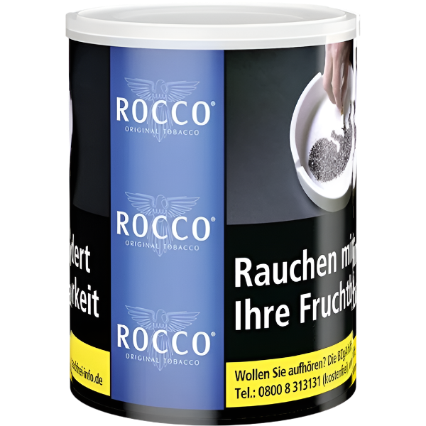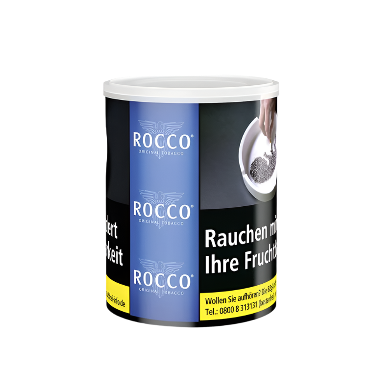 Der Rocco Blue Original Tabak bietet ein mildes Raucherlebnis mit einem angenehmen Aroma, das die American Blend Mischung hervorragend zur Geltung bringt. Die Tabakdose ist besonders für Raucher geeignet, die ihre Zigaretten selbst stopfen möchten. Denken Sie jedoch daran, sich der gesundheitlichen Risiken des Rauchens bewusst zu sein.