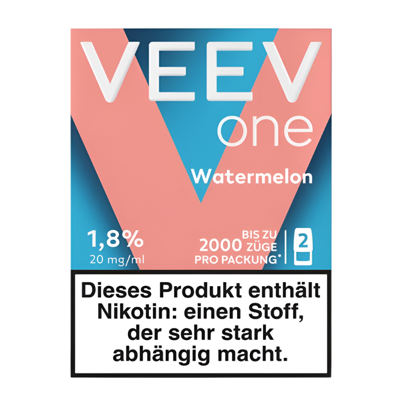 Die VEEV ONE Pods - Watermelon bieten erfrischendes Wassermelonen-Aroma und 20 mg/ml Nikotin in zwei 2 ml-Pods – ideal für konstanten Dampfgenuss und einfachen Pod-Wechsel.